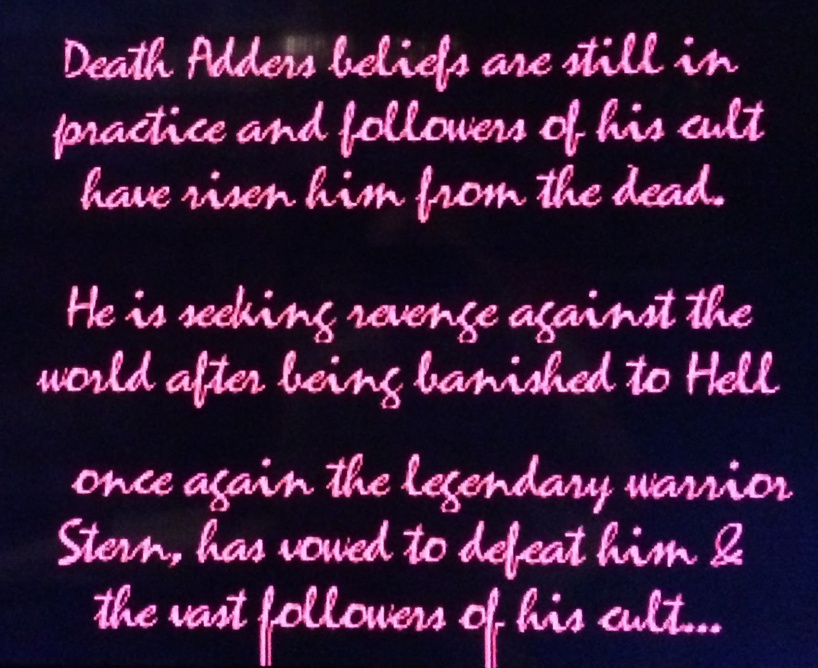 Now that is out of the way, it appears the story for Curse takes place after the events of Revenge of Death Adder.