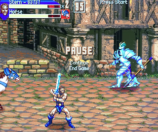 You immediately start out in a familiar area. Do the guard sprites ring any bells? Any Capcom bells? Yes, the enemies you’ll encounter in the first episode have been lifted from Capcom’s awesome game, Knights of the Round.